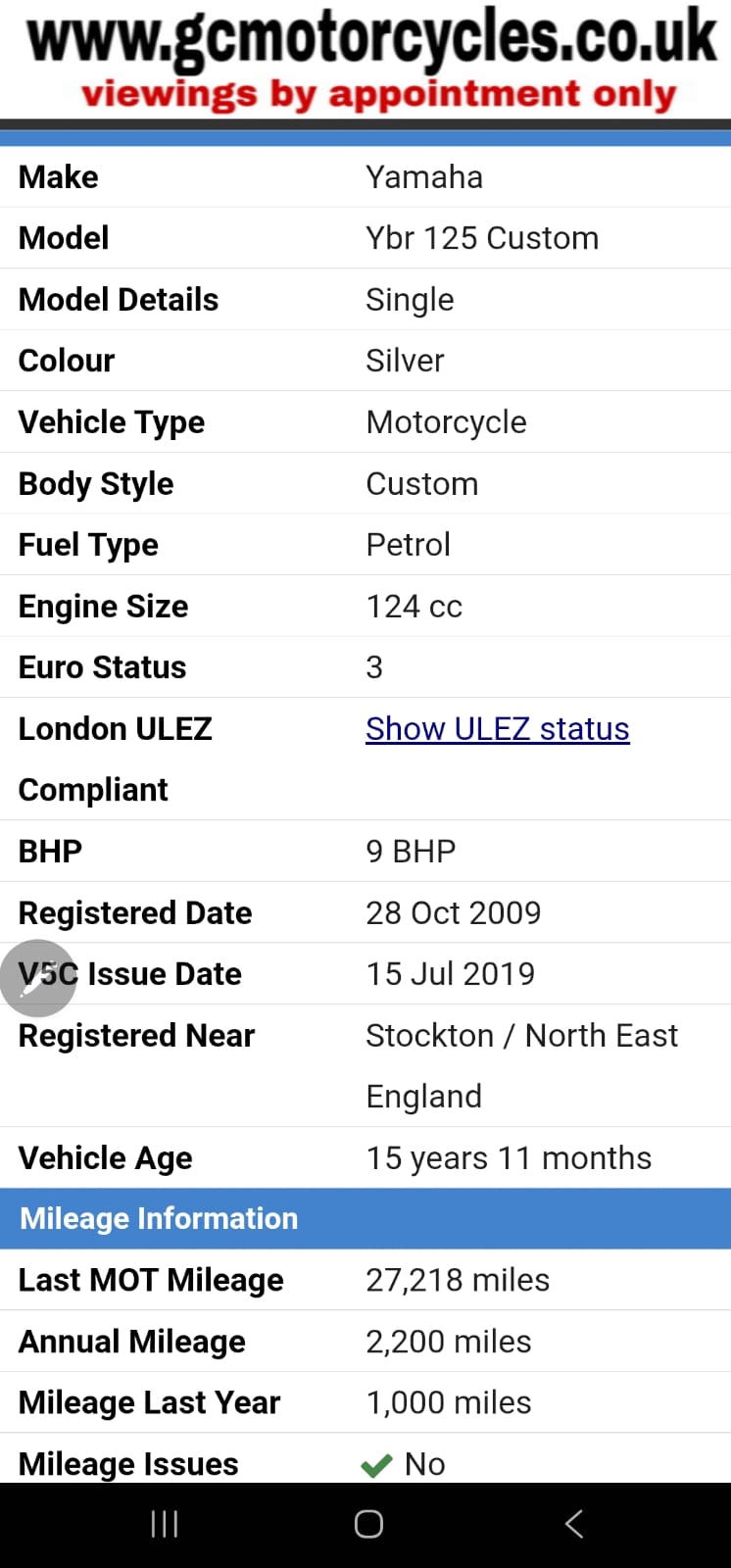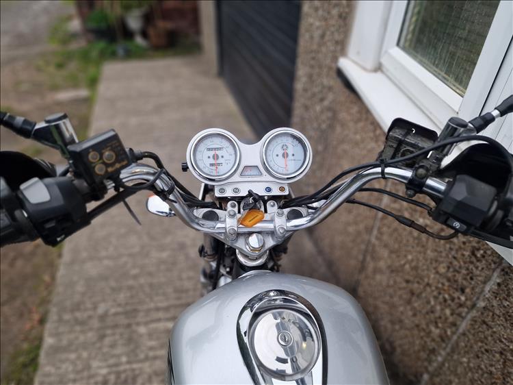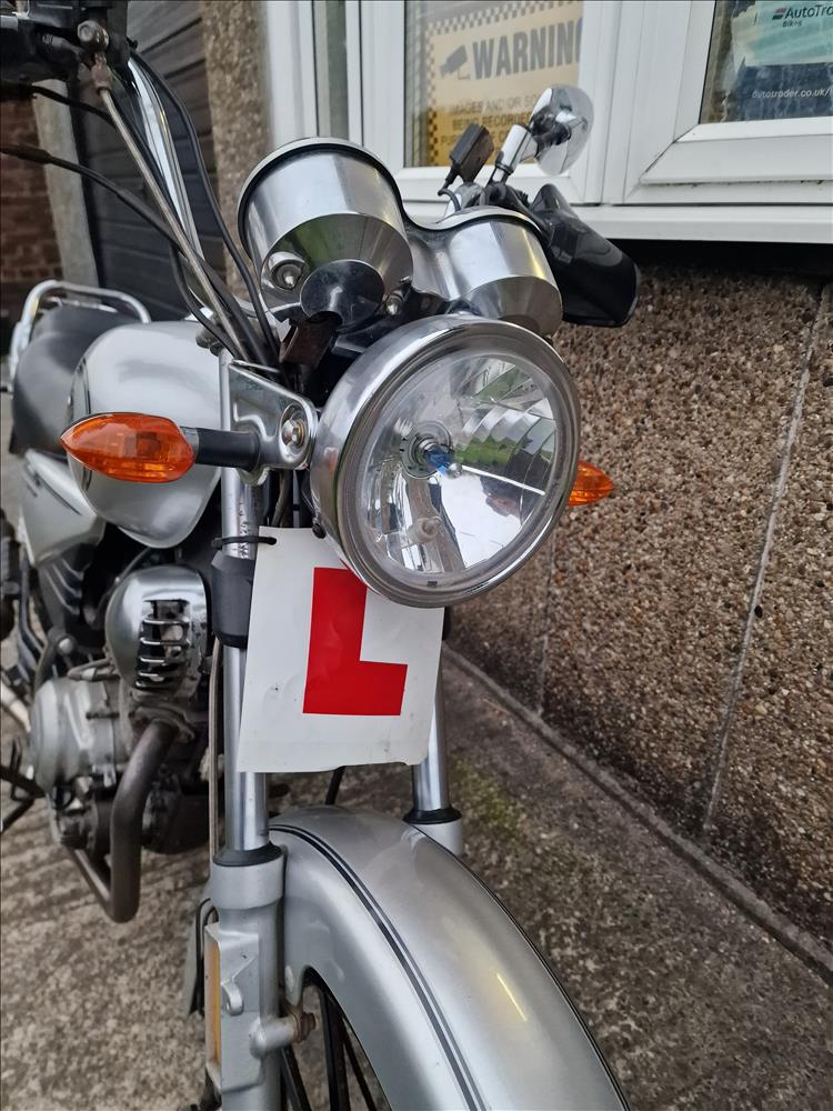 GENUINE UK 2009 HPI CLEAR YAMAHA YBR125 CUSTOM FUEL INJECTION , 3 PREVIOUS OWNERS , 27K , COMES WITH SPARE KEY , OWNERS MANUAL , SERVICE BOOK , OLD MOTS etc , ATTRACTIVE LOOKING BIKE FINISHED IN FACTORY SILVER PAINTWORK WITH DECENT CHROMEWORK , FITTED WITH SEVERAL UPGRADES INCLUDING.. STAINLESS STEEL PERFORMANCE EXHAUST SYSTEM BY LEO VINCE , STAINLESS STEEL BRAKE LINES BY GOODRIDGE , HEATED HANDLEBAR GRIPS BY OXFORD AND ALSO FITTED HANDGUARDS , OTHERWISE ORIGINAL ORDER THROUGHOUT . VERY RELIABLE, STARTS FIRST TIME WITH EITHER ELECTRIC START OR KICK START . RUNS AND RIDES WELL , INCLUDES 12 MONTHS MOT , IDEAL BIKE TO PASS YOUR TEST ON OR DAILY RIDE TO WORK , PRICED FOR A QUICK SALE , STRICTLY NO OFFERS OR PX'S , FIRST TO SEE WILL BUY , BARGAIN