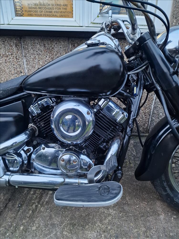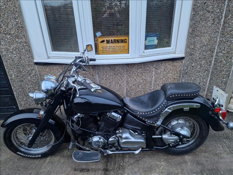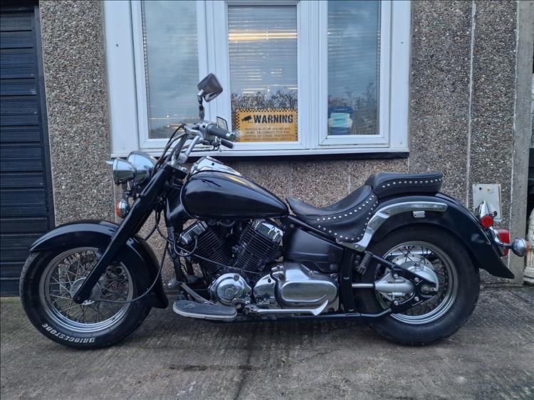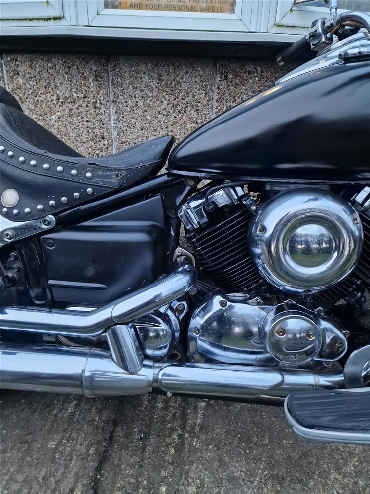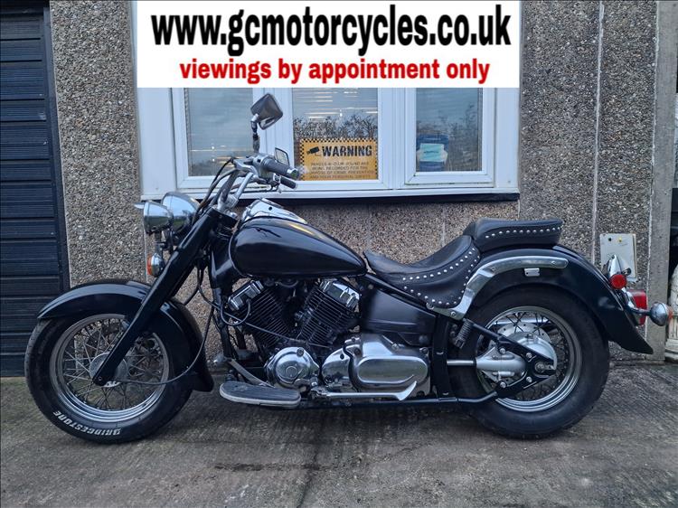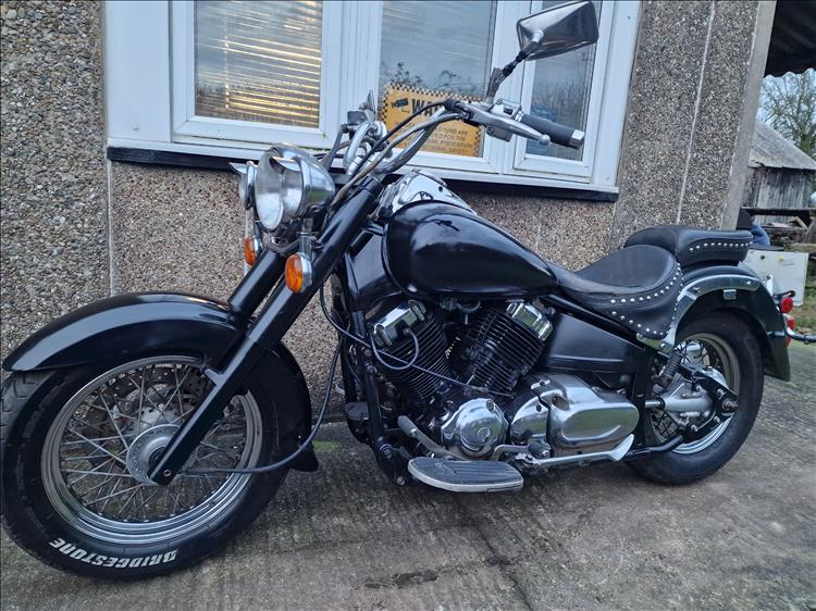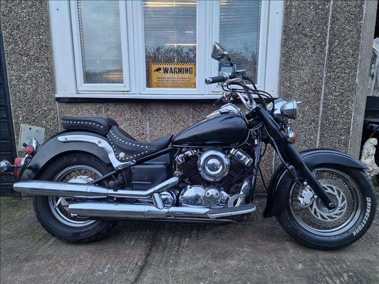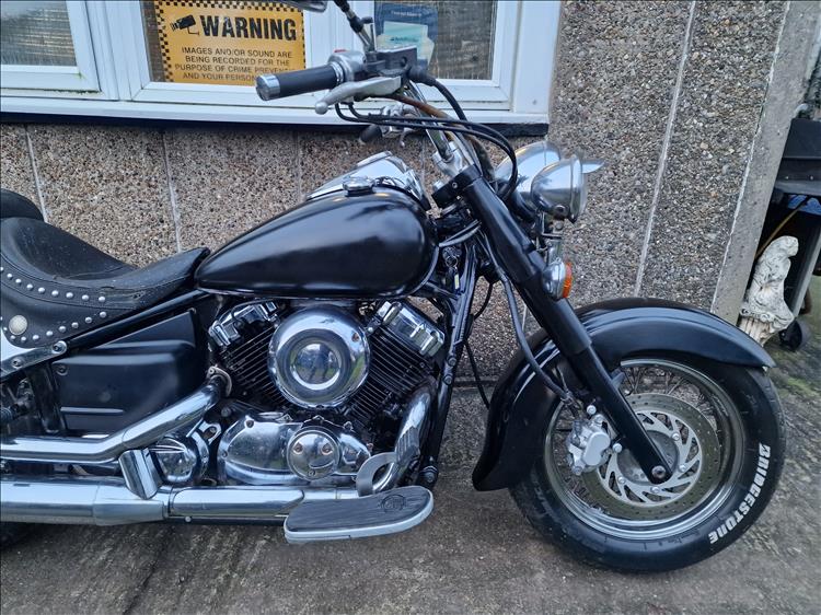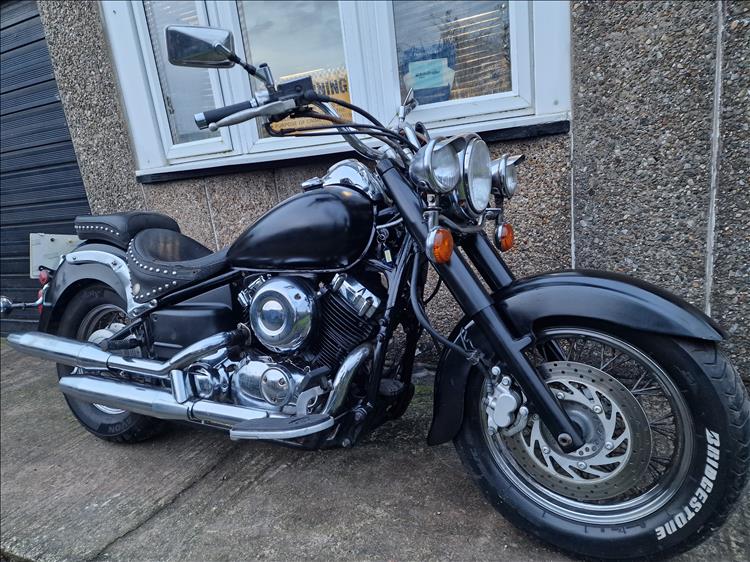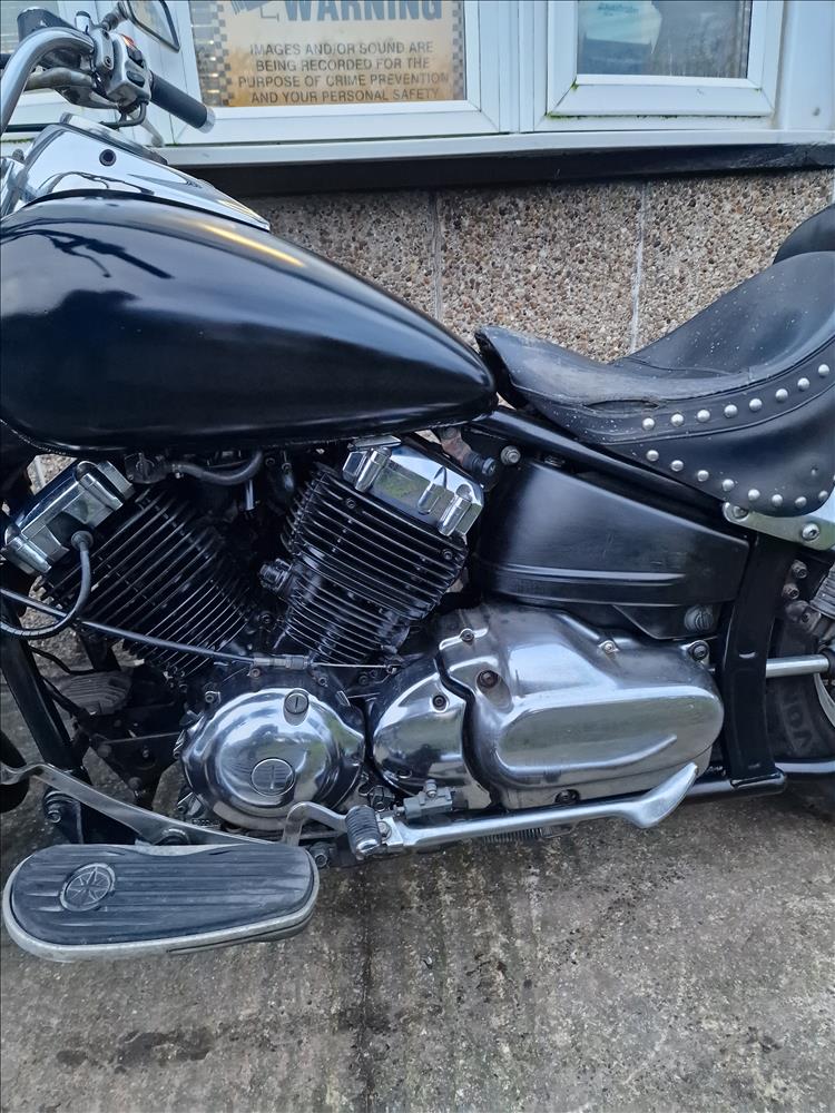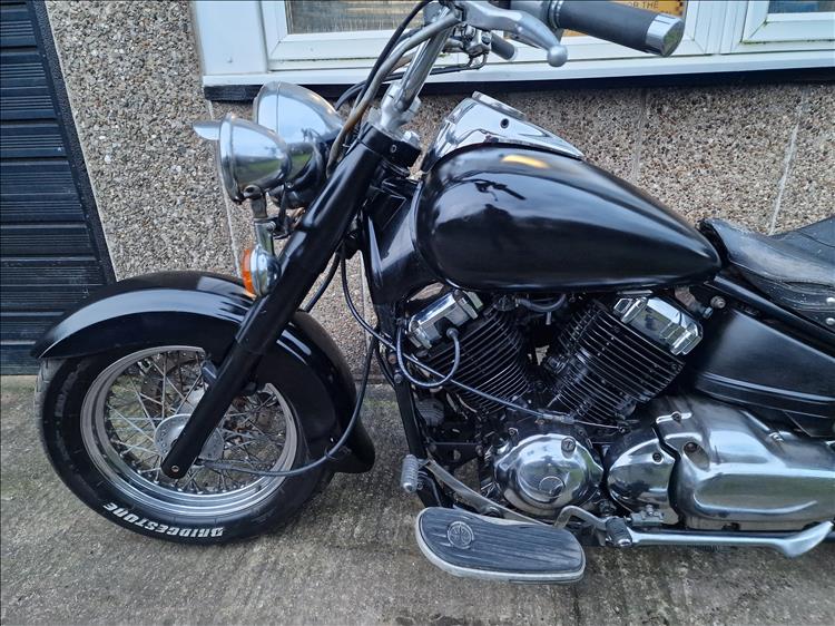 GENUINE UK HPI CLEAR YAMAHA XVS650A DRAGSTAR REGISTERED 06/04/2004 , ONLY 19,056 MILES SUPPORTED BY GOV.UK CHECK SITE. A2 COMPLIANT. FINISHED IN SATIN BLACK AND CHROME WITH NO YAMAHA BADGES OR LOGOS ANYWHERE, STUDDED LEATHER SADDLE WITH A WELL USED PATINA . STANDARD PIPES , FOOTBOARDS , ADDITIONAL DRIVING LIGHTS , COOL LOOKING BIKE WITH LOW MILES , HPI CLEAR WITH NO DAMAGE OF ANY SIGNIFICANCE, EXCELLENT TYRES . STARTS , RUNS AND RIDES FINE AND OFFERED WITH 12 MONTHS MOT . PRICED COMPETITIVELY SO STRICTLY NO OFFERS , PRICED TO SELL , FIRST TO SEE WILL BUY