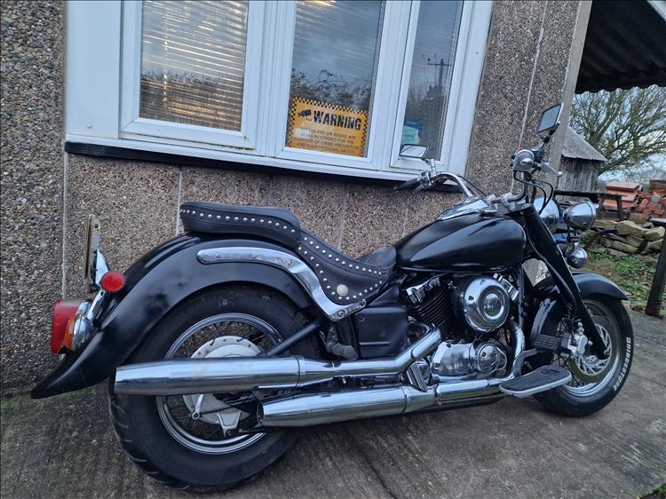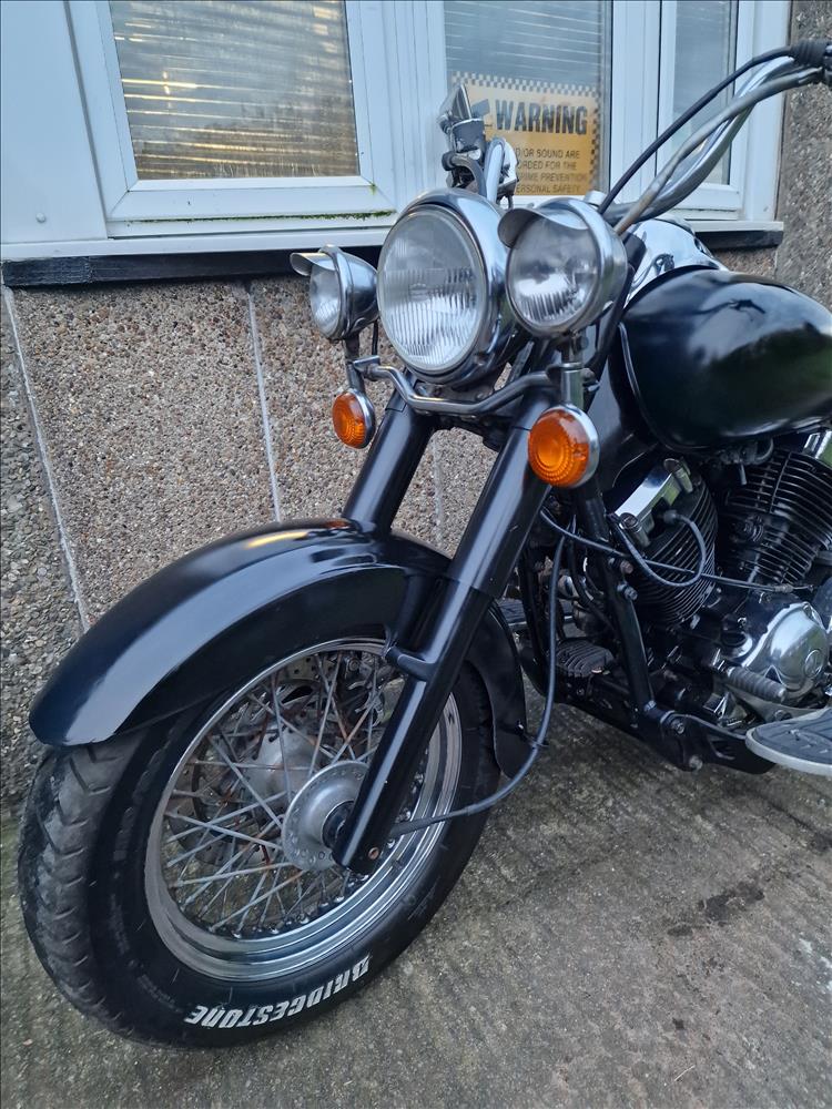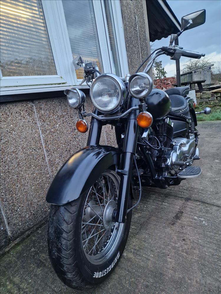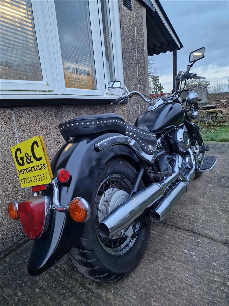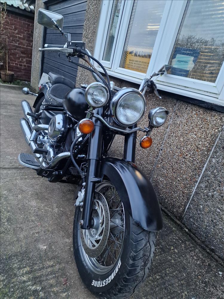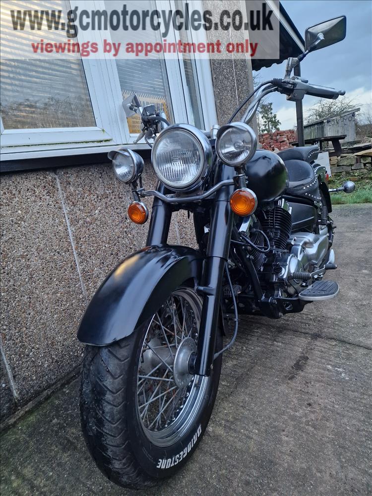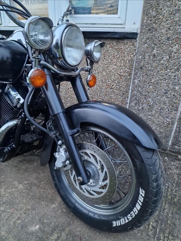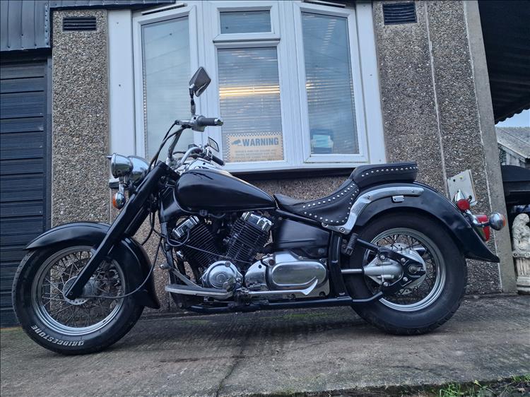 GENUINE UK HPI CLEAR YAMAHA XVS650A DRAGSTAR REGISTERED 06/04/2004 , ONLY 19,056 MILES SUPPORTED BY GOV.UK CHECK SITE. A2 COMPLIANT. FINISHED IN SATIN BLACK AND CHROME WITH NO YAMAHA BADGES OR LOGOS ANYWHERE, STUDDED LEATHER SADDLE WITH A WELL USED PATINA . STANDARD PIPES , FOOTBOARDS , ADDITIONAL DRIVING LIGHTS , COOL LOOKING BIKE WITH LOW MILES , HPI CLEAR WITH NO DAMAGE OF ANY SIGNIFICANCE, EXCELLENT TYRES . STARTS , RUNS AND RIDES FINE AND OFFERED WITH 12 MONTHS MOT . PRICED COMPETITIVELY SO STRICTLY NO OFFERS , PRICED TO SELL , FIRST TO SEE WILL BUY
