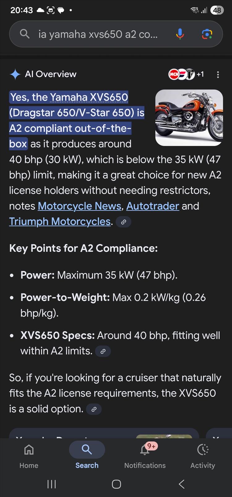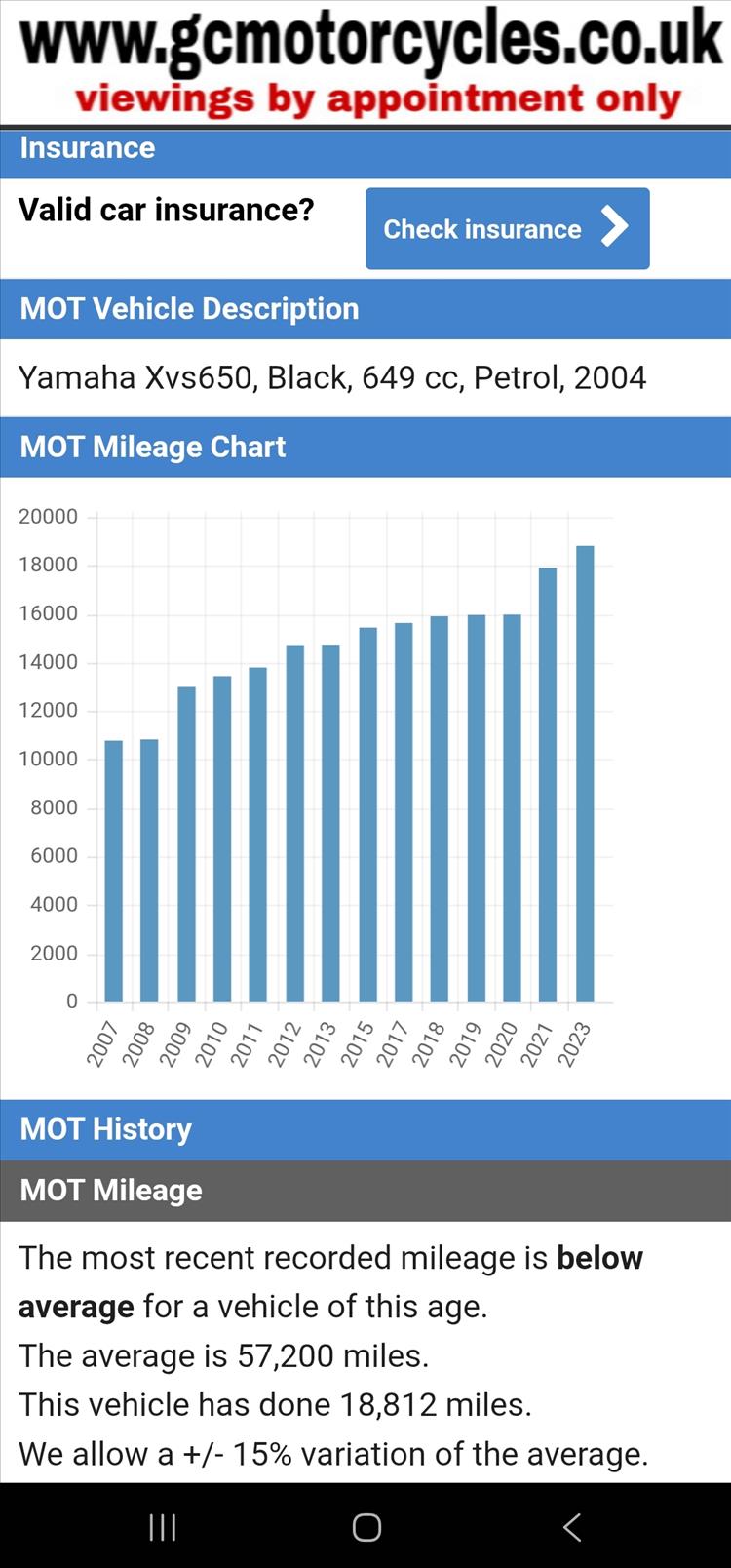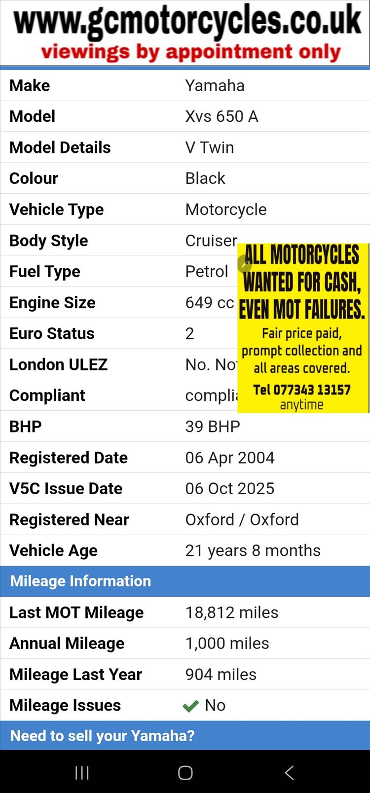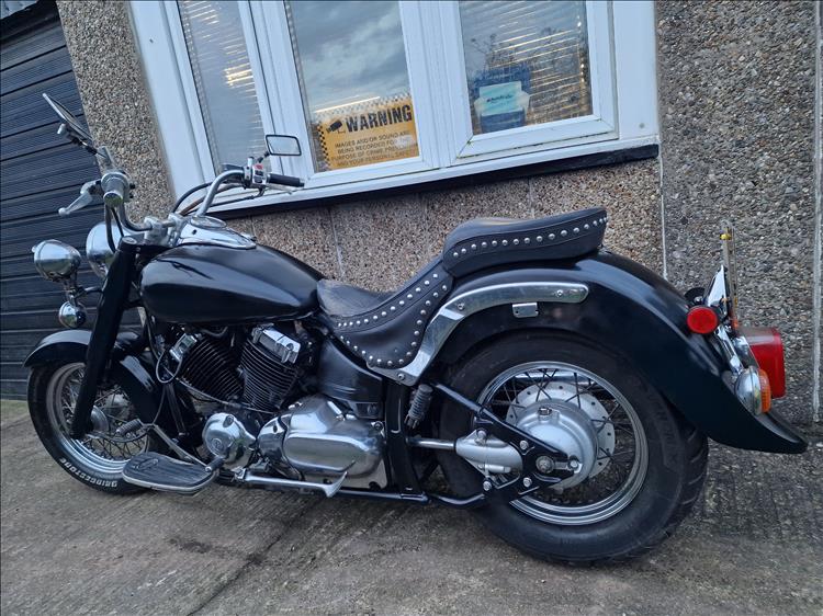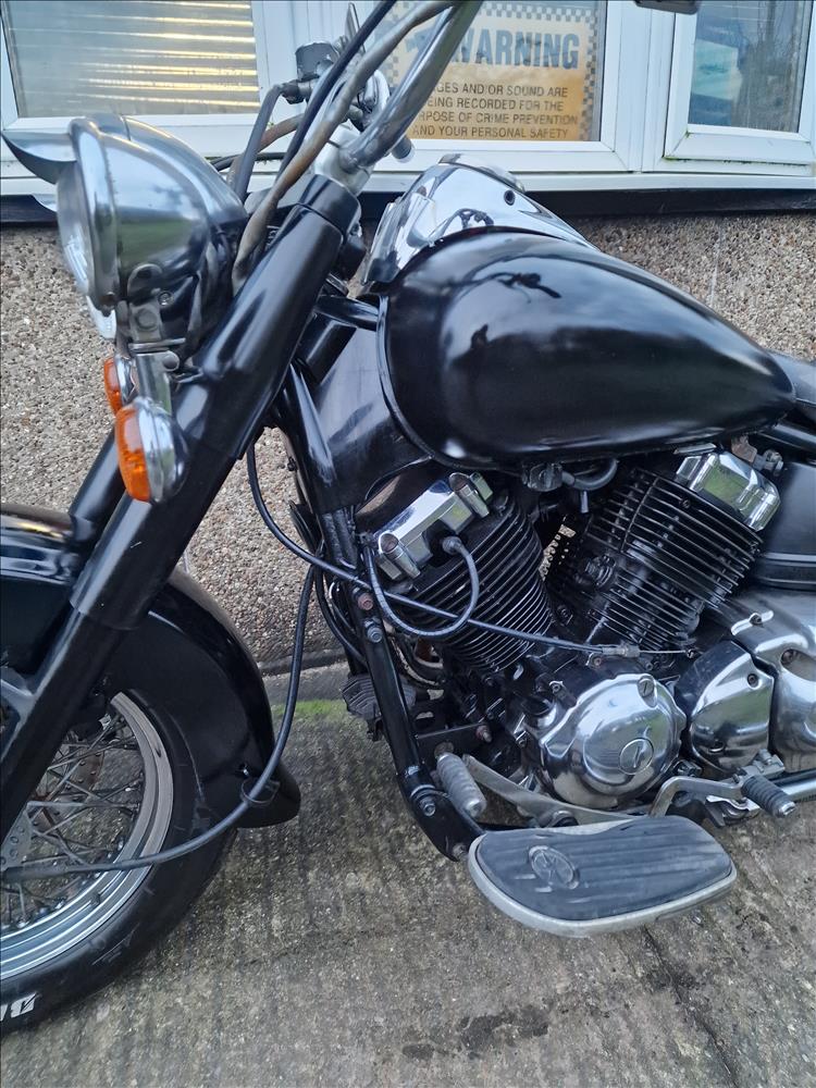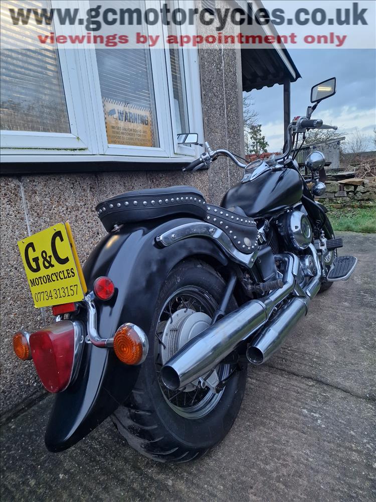 GENUINE UK HPI CLEAR YAMAHA XVS650A DRAGSTAR REGISTERED 06/04/2004 , ONLY 19,056 MILES SUPPORTED BY GOV.UK CHECK SITE. A2 COMPLIANT. FINISHED IN SATIN BLACK AND CHROME WITH NO YAMAHA BADGES OR LOGOS ANYWHERE, STUDDED LEATHER SADDLE WITH A WELL USED PATINA . STANDARD PIPES , FOOTBOARDS , ADDITIONAL DRIVING LIGHTS , COOL LOOKING BIKE WITH LOW MILES , HPI CLEAR WITH NO DAMAGE OF ANY SIGNIFICANCE, EXCELLENT TYRES . STARTS , RUNS AND RIDES FINE AND OFFERED WITH 12 MONTHS MOT . PRICED COMPETITIVELY SO STRICTLY NO OFFERS , PRICED TO SELL , FIRST TO SEE WILL BUY