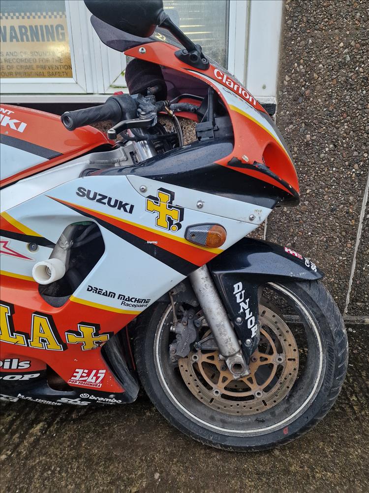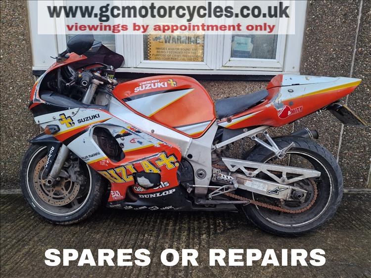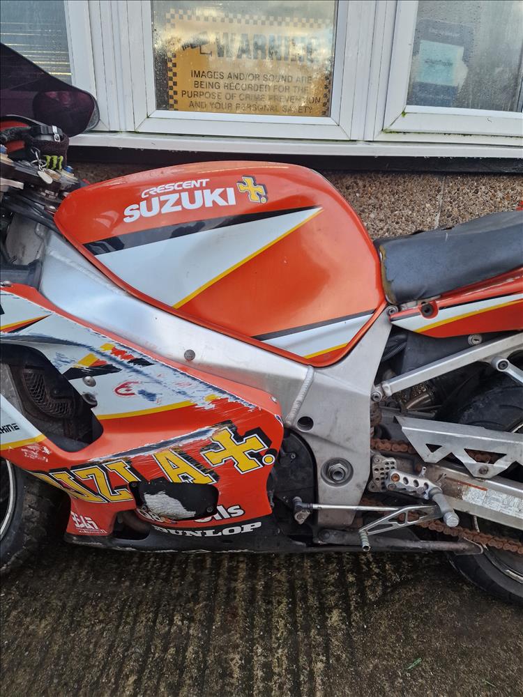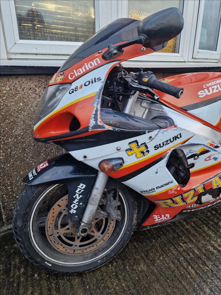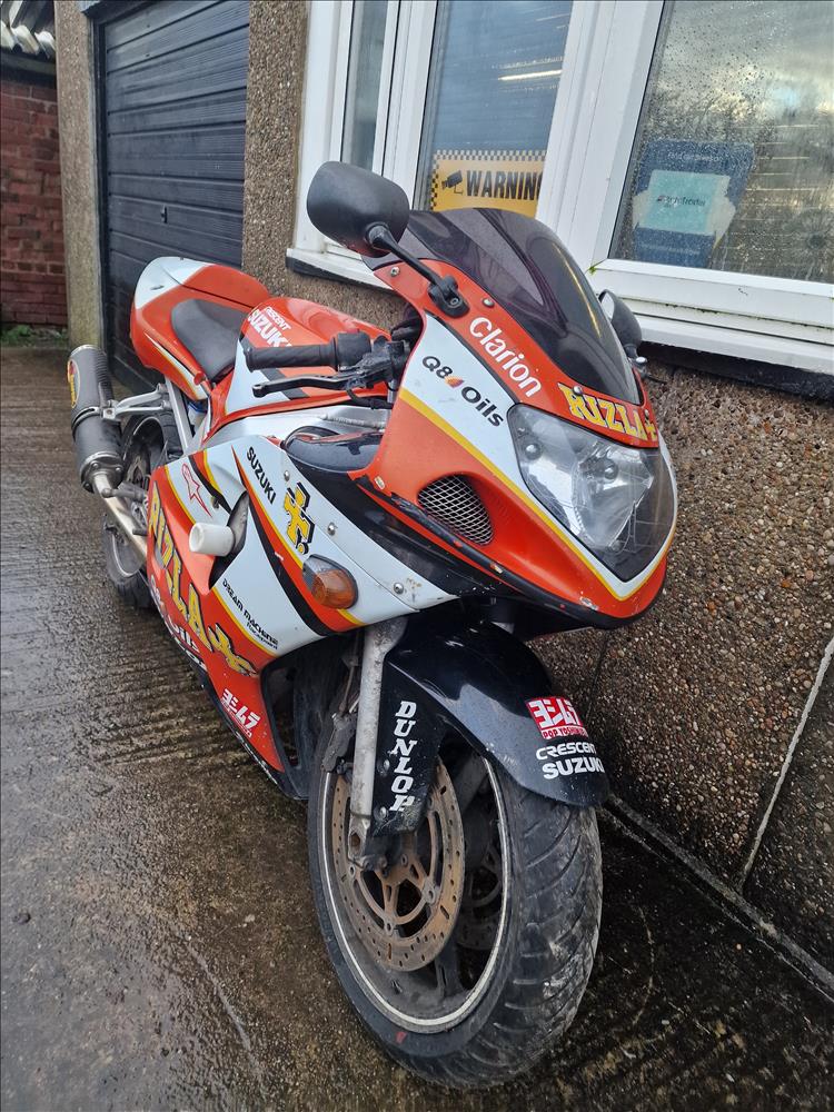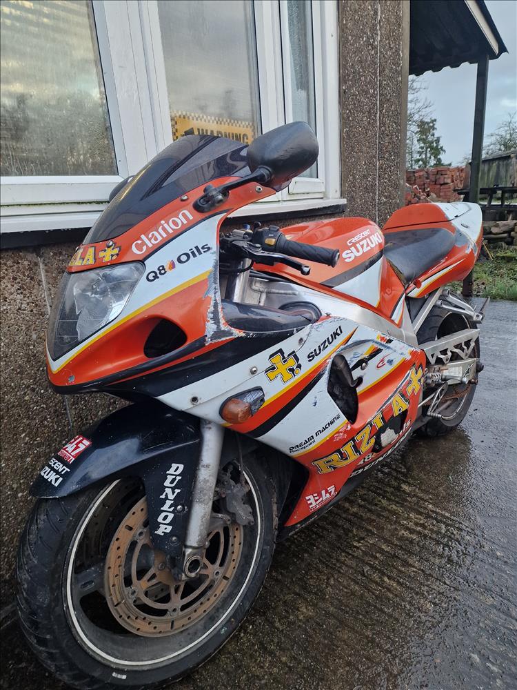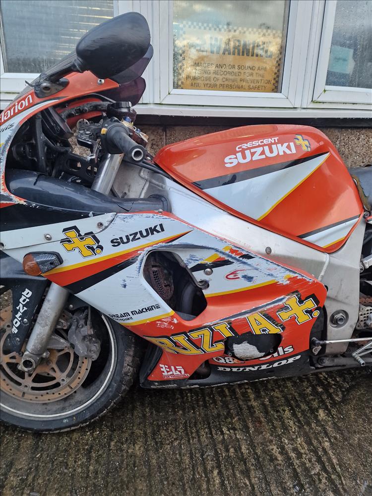 GENUINE UK HPI CLEAR 2002 SUZUKI GSXR 600 K2 , 37K , 7 PREVIOUS OWNERS. IDEAL TRACK BIKE OR PROJECT ! DROPPED ON THE LEFT HAND SIDE RESULTING IN SCUFFED FAIRINGS AND GENERATOR COVER LEAKING OIL . MOT EXPIRED 26/07/2025 , SAT OUTSIDE SINCE RESULTING IN CORROSION . RIPPED SEAT AND NO BATTERY. WHEN CONNECTED TO A POWER PACK IT RUNS WITH A HEALTHY SOUNDING MOTOR , HPI CLEAR WITH V5 AND KEYS , 100% COMPLETE , SITTING ON GOOD TYRES AND FREE-WHEELS EASY , IDEAL PROJECT - EASILY TRANSFORMED WITH CHEAP CHINESE BODYKIT , OR IDEAL TRACK BIKE . PRICED CHEAP FOR QUICK SALE SO STRICTLY NO OFFERS WHATSOEVER, FIRST PERSON WITH A VAN OR TRAILER TAKES IT AWAY, BARGAIN NO OFFERS