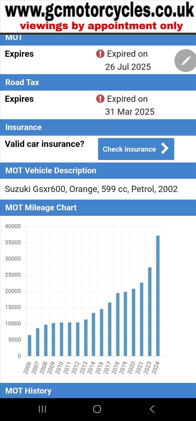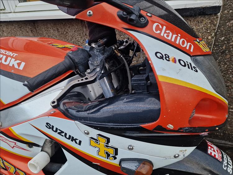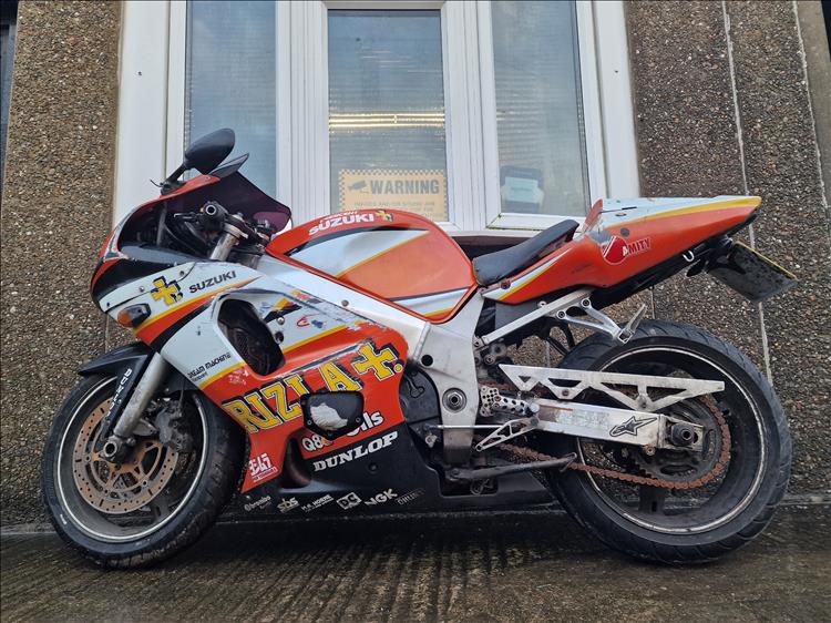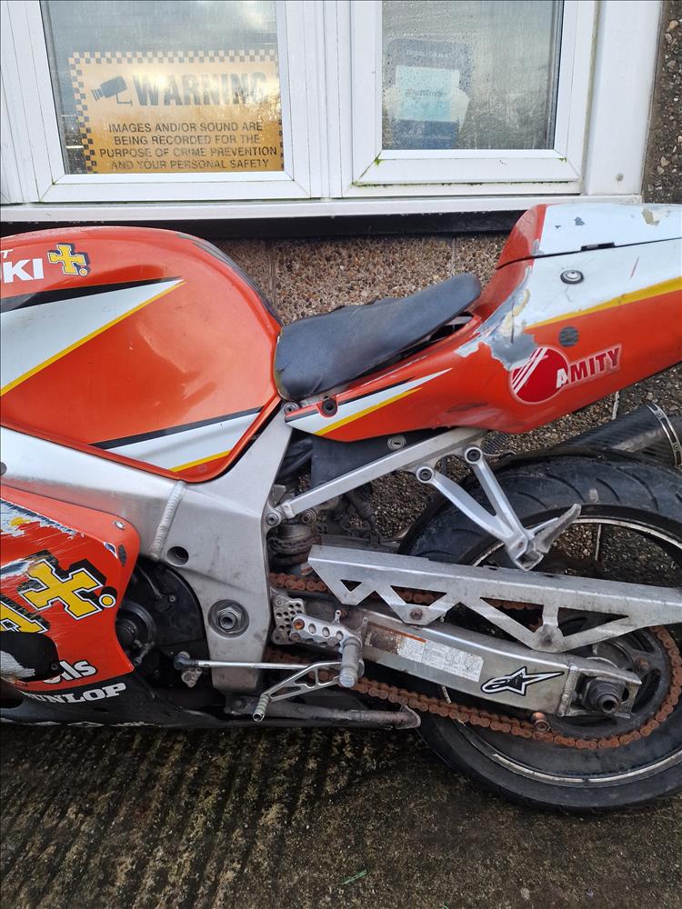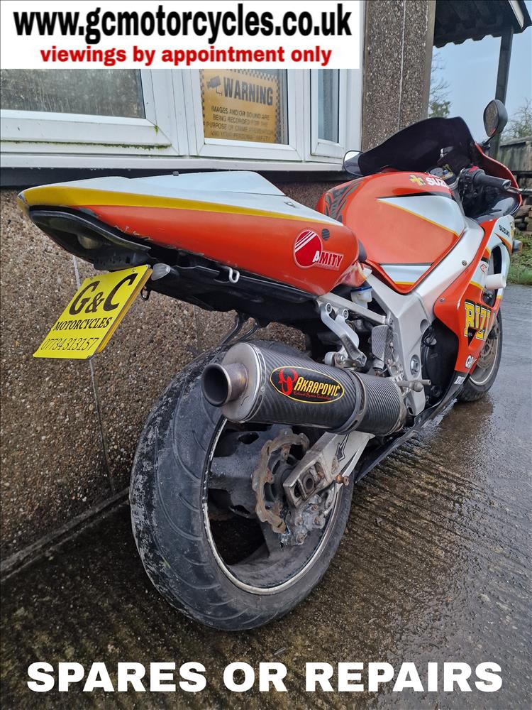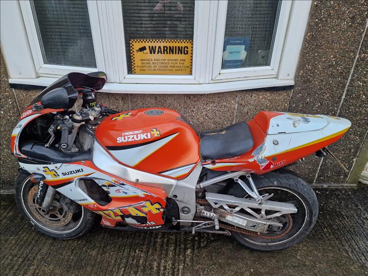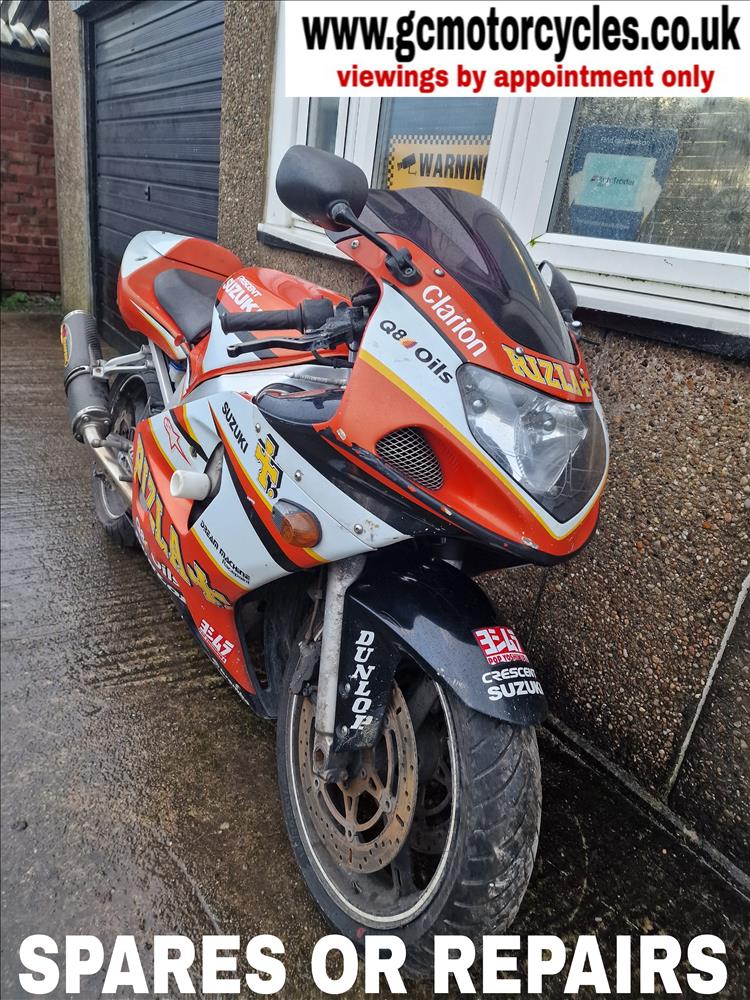 GENUINE UK HPI CLEAR 2002 SUZUKI GSXR 600 K2 , 37K , 7 PREVIOUS OWNERS. IDEAL TRACK BIKE OR PROJECT ! DROPPED ON THE LEFT HAND SIDE RESULTING IN SCUFFED FAIRINGS AND GENERATOR COVER LEAKING OIL . MOT EXPIRED 26/07/2025 , SAT OUTSIDE SINCE RESULTING IN CORROSION . RIPPED SEAT AND NO BATTERY. WHEN CONNECTED TO A POWER PACK IT RUNS WITH A HEALTHY SOUNDING MOTOR , HPI CLEAR WITH V5 AND KEYS , 100% COMPLETE , SITTING ON GOOD TYRES AND FREE-WHEELS EASY , IDEAL PROJECT - EASILY TRANSFORMED WITH CHEAP CHINESE BODYKIT , OR IDEAL TRACK BIKE . PRICED CHEAP FOR QUICK SALE SO STRICTLY NO OFFERS WHATSOEVER, FIRST PERSON WITH A VAN OR TRAILER TAKES IT AWAY, BARGAIN NO OFFERS