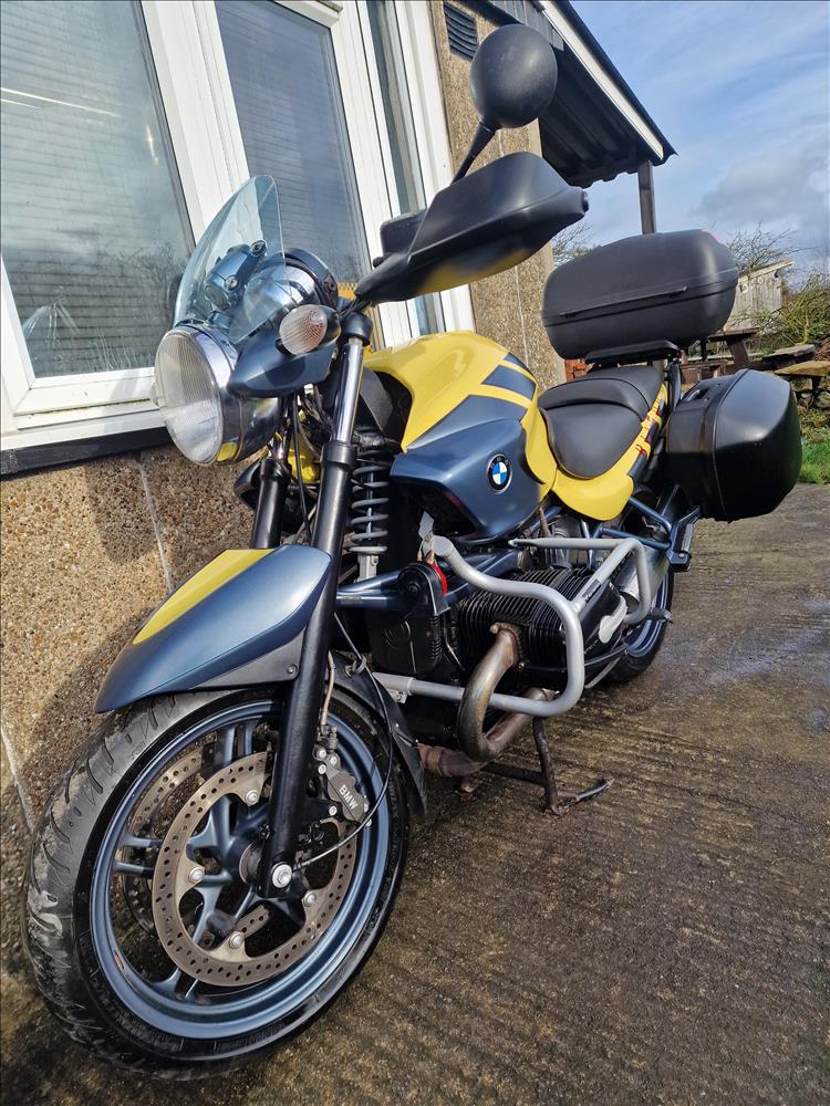 2003 BMWR1150R , GENUINE UK HPI CLEAR BIKE REGISTERED 01/07/2003 WITH 32,009 MILES SUPPORTED BY GOV.MOT WEBSITE. MATURE OWNER FOR THE LAST 6 YEARS . LOVELY ORIGINAL CONDITION WITH NO EVIDENCE OF HAVING EVER BEEN DROPPED ! BEAUTIFUL FACTORY BMW YELLOW PAINTWORK WITH TRIPLE LUGGAGE SYSTEM (SIDE BOXES BMW, TOP BOX AFTERMARKET) FACTORY TOOLKIT UNDER THE SEAT. FITTED WITH SAFETY CRASH PROTECTION SYSTEM BY SW MOTO , STAINLESS STEEL BRAKE LINES , LEO VINCI PERFORMANCE EXHAUST WITH SLIGHTLY DEEPER TONE - NOT OBTRUSIVE . NON ABS MODEL SO NO COSTLY ANNOYING PROBLEMS TO WORRY ABOUT . FACTORY FITTED HEATED GRIPS , HAND GUARDS AND SCREEN , EXCELLENT CONSUMABLE ITEMS . THIS IS A RARE OPPORTUNITY TO FIND A BOXER WITH SUCH LOW MILEAGE , IT STARTS , RUNS AND RIDES SUPERB AND INCLUDES 12 MONTHS MOT . PRICED SENSIBLY FOR A QUICK EASY SALE , NO OFFERS , BARGAIN