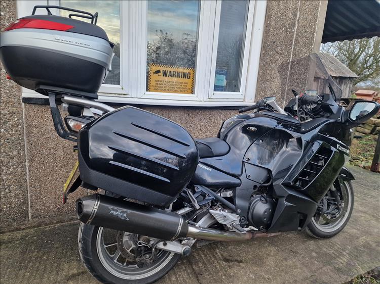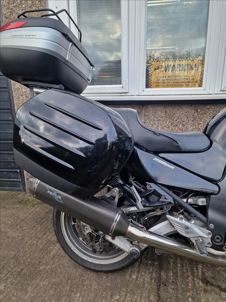 GENUINE UK HPI CLEAR KAWASAKI GTR1400 ZG1400A8F REGISTERED 15/08/07 , COMES WITH SPARE TRANSPONDER, OWNERS MANUAL, SERVICE BOOK AND HISTORY etc . 66,047 MILES SUPPORTED BY GOV.UK CHECKSITE, 6 PREVIOUS OWNERS , FINISHED IN FACTORY BLACK METALIC PAINTWORK WITH TRIPLE LUGGAGE SYSTEM , REMUS CARBON FIBRE PERFORMANCE EXHAUST- MAKES A LOVELY TONE , RECENT SERVICE AND NEW SET OF TYRES . STARTS , RUNS AND RUDES SUPERB - A LOVELY ATTRACTIVE TOURING BIKE WITH NO ACCIDENT DAMAGE OF ANY SIGNIFICANCE, PRICED SENSIBLY FOR A QUICK EASY SALE , STRICTLY NO OFFERS OR MESSERS , FIRST TO SEE WILL DEFINITELY BUY , BARGAIN