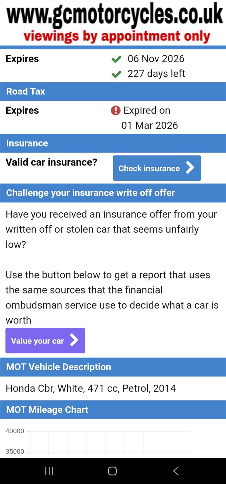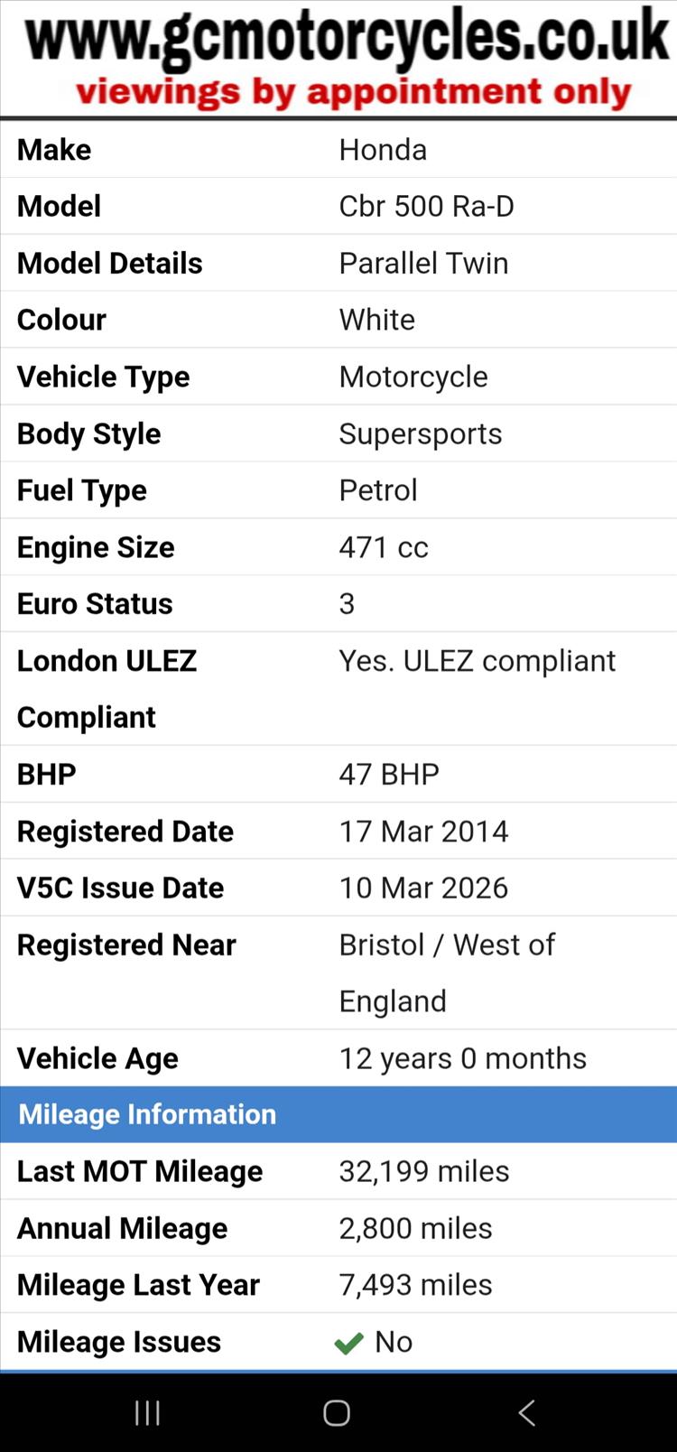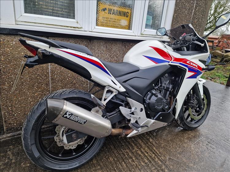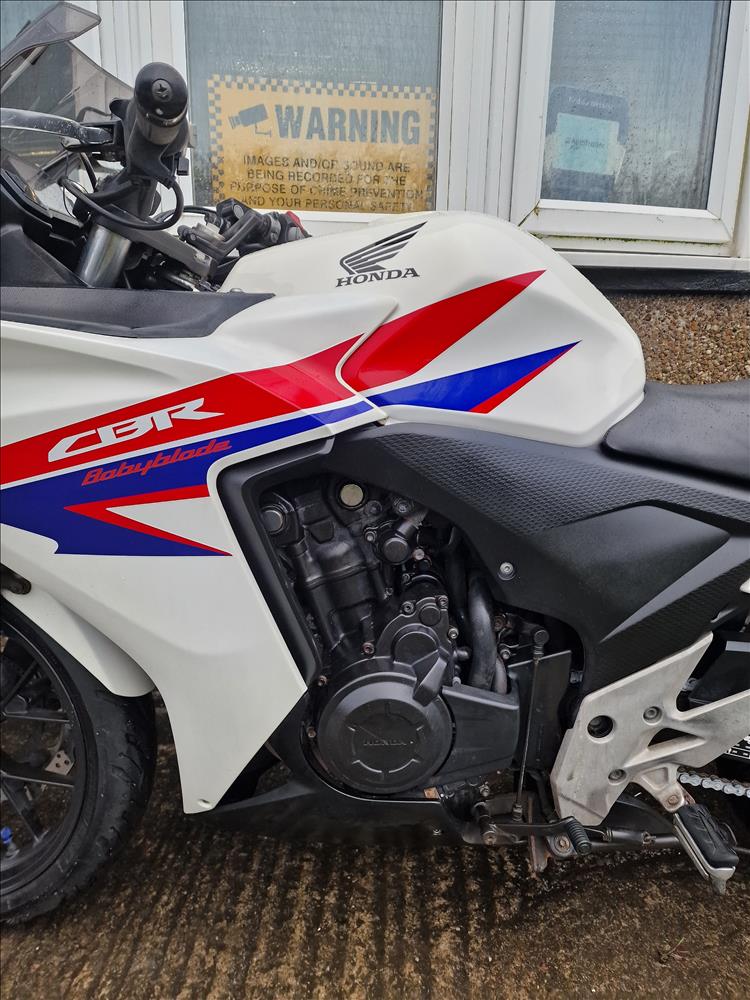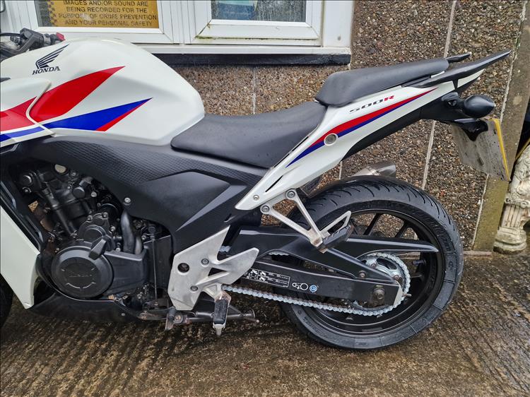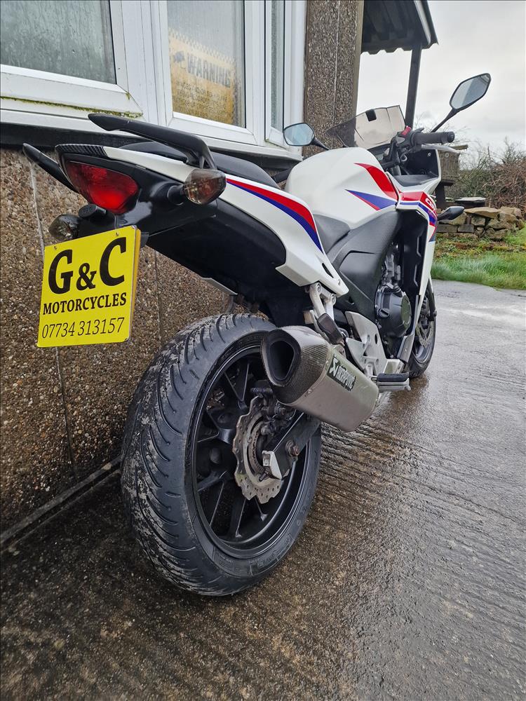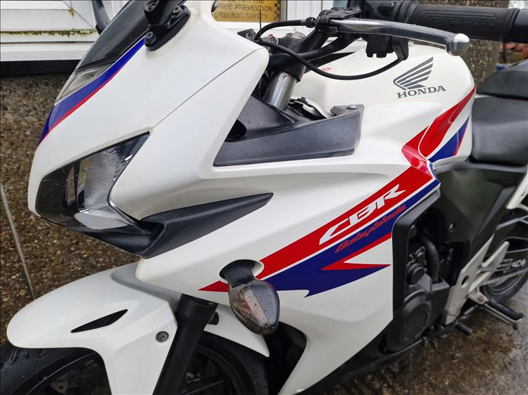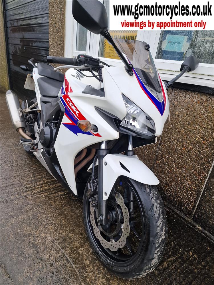 GENUINE UK HPI CLEAR HONDA CBR500 RA-D REGISTERED 17/03/2014 , ABS BRAKES , 33,299 MILES SUPPORTED BY GOV.UK CHECK SITE, 4 PREVIOUS OWNERS , SPARE CODED KEY , OWNERS MANUAL , SERVICE BOOK AND OLD RECIEPTS , MOTS etc . A2 LICENCE COMPLIANT , CHEAP TAX BRACKET , EXCELLENT MPG AND LOW RUNNING COSTS . TIDY EXAMPLE IN THE SOUGHT AFTER FACTORY HRC PAINTWORK WITH NO ACCIDENT DAMAGE , COMPLETELY ORIGINAL ORDER THROUGHOUT WITH THE ADDITION OF A SPORTS EXHAUST . STARTS , RUNS AND RIDES PERFECTLY WITH RECENT MICHELIN TYRES . LOVELY FIRST BIG BIKE FOR SOMEBODY , READY TO RIDE AND ENJOY , PRICED SENSIBLY FOR A QUICK SALE , STRICTLY NO OFFERS , FIRST TO SEE WILL BUY , BARGAIN