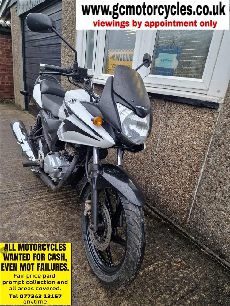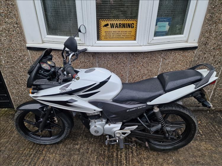 GENUINE UK HPI CLEAR HONDA CBF125 MA REGISTERED 31/10/10 FINISHED IN FACTORY WHITE PAINTWORK WITH 28,429 MILES SUPPORTED BY GOV.UK CHECK SITE, 5 PREVIOUS OWNERS, MATURE OWNER FOR THE LAST 6 YEARS, FITTED WITH SLIGHTLY HIGHER CHROMED HANDLEBARS, QUALITY TYRES WITH PLENTY OF TREAD, NO ACCIDENT DAMAGE OF ANY SIGNIFICANCE, STARTS FIRST TIME , RUNS AND RIDES PERFECTLY AS THESE FUEL INJECTED HONDAS ALWAYS DO ! PRICE INCLUDES 12 MONTHS MOT, IDEAL FIRST BIKE OR DAILY COMMUTER , RIDEAWAY , PRICED FOR QUICK SALE, STRICTLY NO OFFERS , FIRST TO SEE WILL BUY