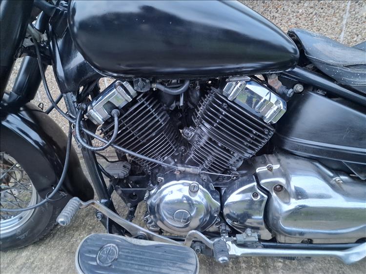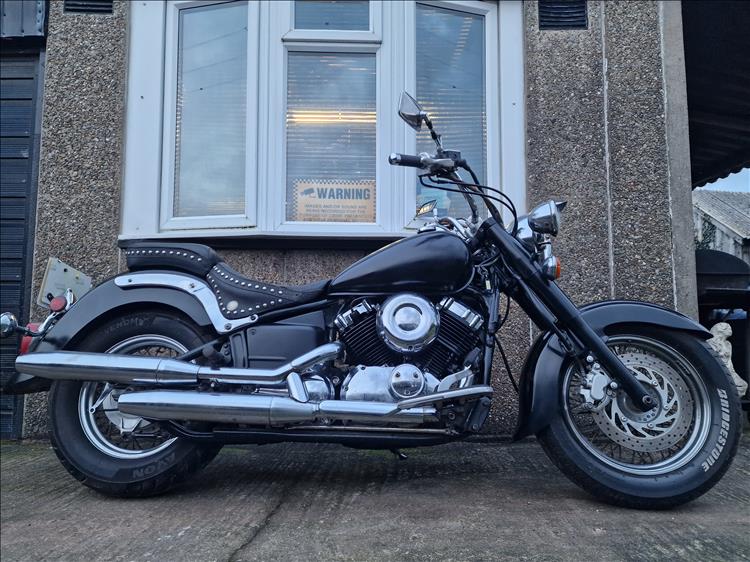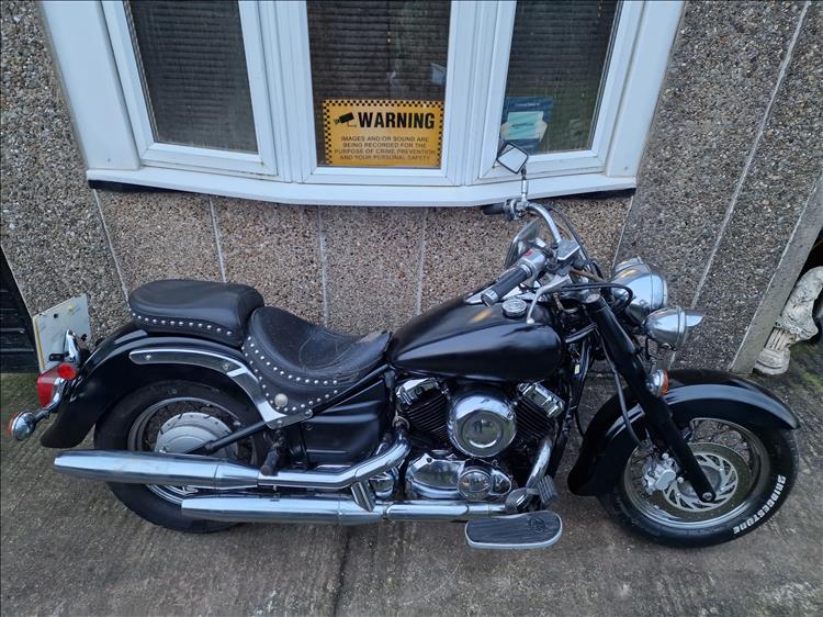 GENUINE UK HPI CLEAR YAMAHA XVS650A DRAGSTAR REGISTERED 06/04/2004 , ONLY 19,056 MILES SUPPORTED BY GOV.UK CHECK SITE. A2 COMPLIANT. FINISHED IN SATIN BLACK AND CHROME WITH NO YAMAHA BADGES OR LOGOS ANYWHERE, STUDDED LEATHER SADDLE WITH A WELL USED PATINA . STANDARD PIPES , FOOTBOARDS , ADDITIONAL DRIVING LIGHTS , COOL LOOKING BIKE WITH LOW MILES , HPI CLEAR WITH NO DAMAGE OF ANY SIGNIFICANCE, EXCELLENT TYRES . STARTS , RUNS AND RIDES FINE AND OFFERED WITH 12 MONTHS MOT . PRICED COMPETITIVELY SO STRICTLY NO OFFERS , PRICED TO SELL , FIRST TO SEE WILL BUY