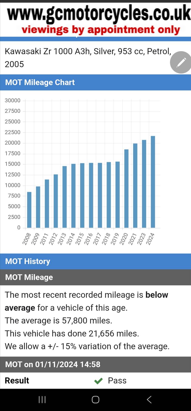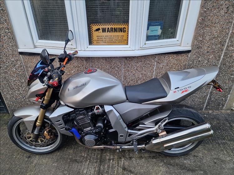 GENUINE UK HPI CLEAR 2005 KAWASAKI Z1000 ZR1000A3H FINISHED IN COOL SATIN SILVER WITH ONLY 3 PREVIOUS OWNERS AND 22,995 MILES SUPPORTED BY GOV.MOT WEBSITE, COMES WITH SPARE UNUSED KEY , OWNERS MANUAL, SERVICE BOOK, DATATAG, SERVICE HISTORY INCLUDING VALVE CLEARANCES etc . THIS IS A BEAUTIFUL LOOKING BIKE IN FACTORY PAINTWORK WITH ORIGINAL KAWASAKI EXHAUST SYSTEM, EXTRAS INCLUDING REAR SEAT COWL, PAZZO STYLE MULTI ADJUSTABLE LEVERS, IRIDIUM SCREEN, RENTHALL STYLE SLIGHTLY TALLER BARS, TAIL TIDY, CRASH BUNGS, RECENT OIL / FILTER AND COOLANT CHANGE. A LOVELY LOOKING BIKE, RIDES AND PERFORMS REALLY WELL , 12 MONTHS MOT , PRICED SENSIBLY FOR A QUICK SALE , NO OFFERS OR MESSERS , FIRST TO SEE WILL BUY , BARGAIN