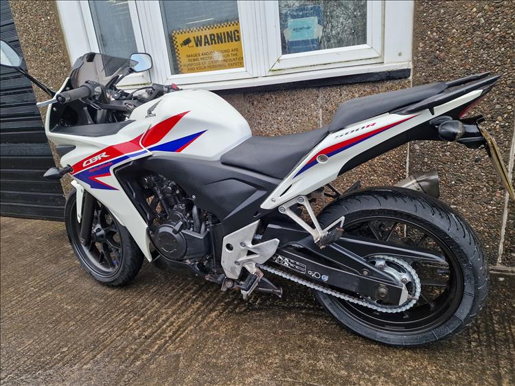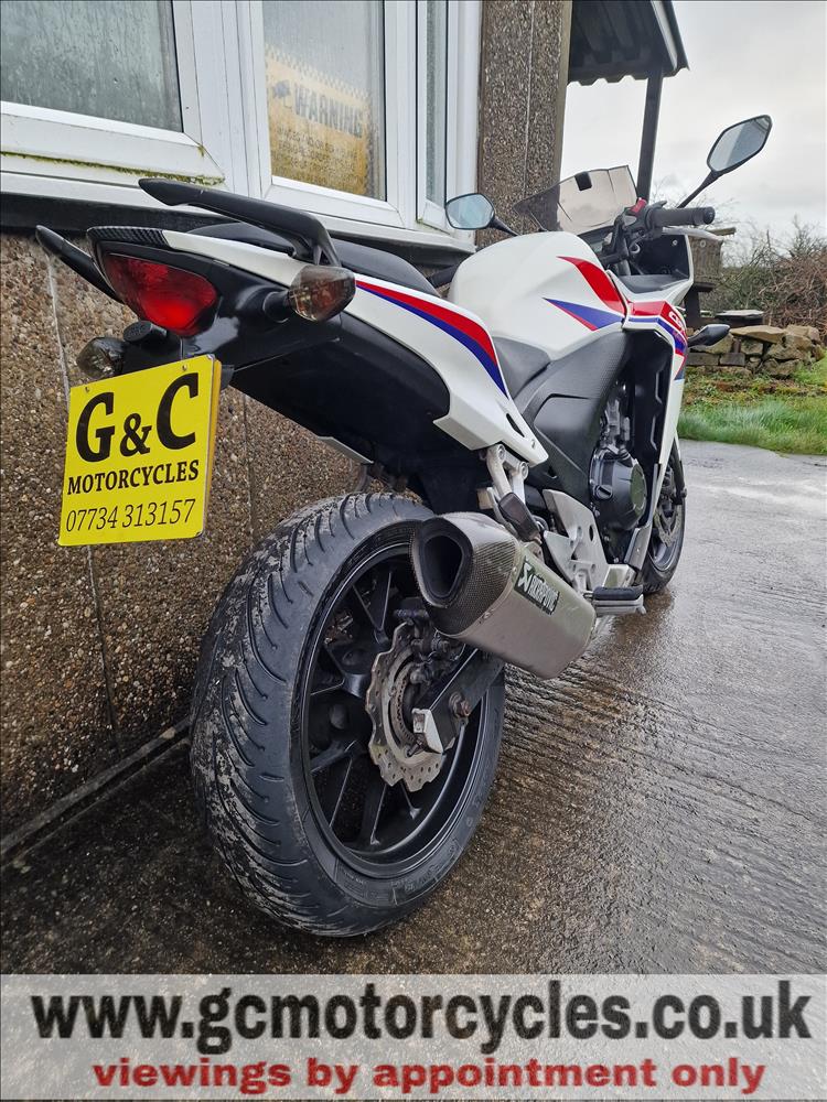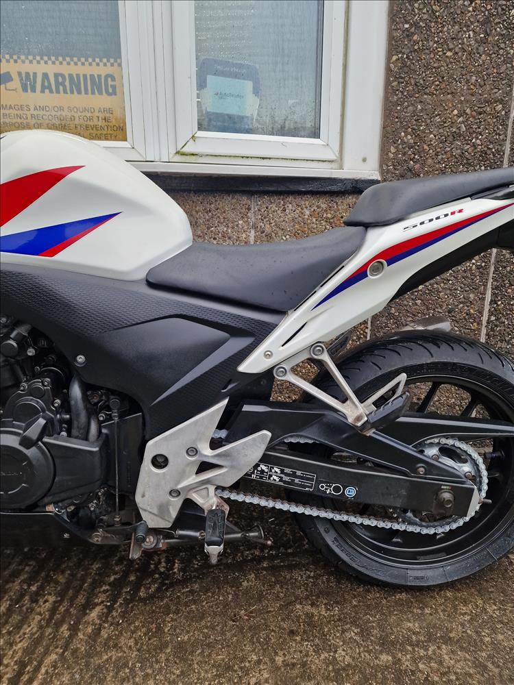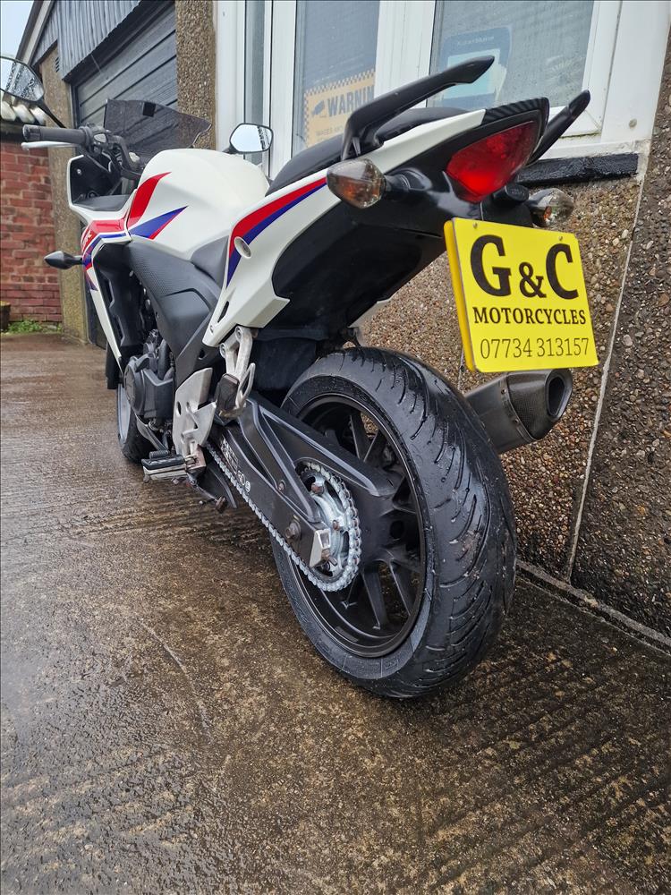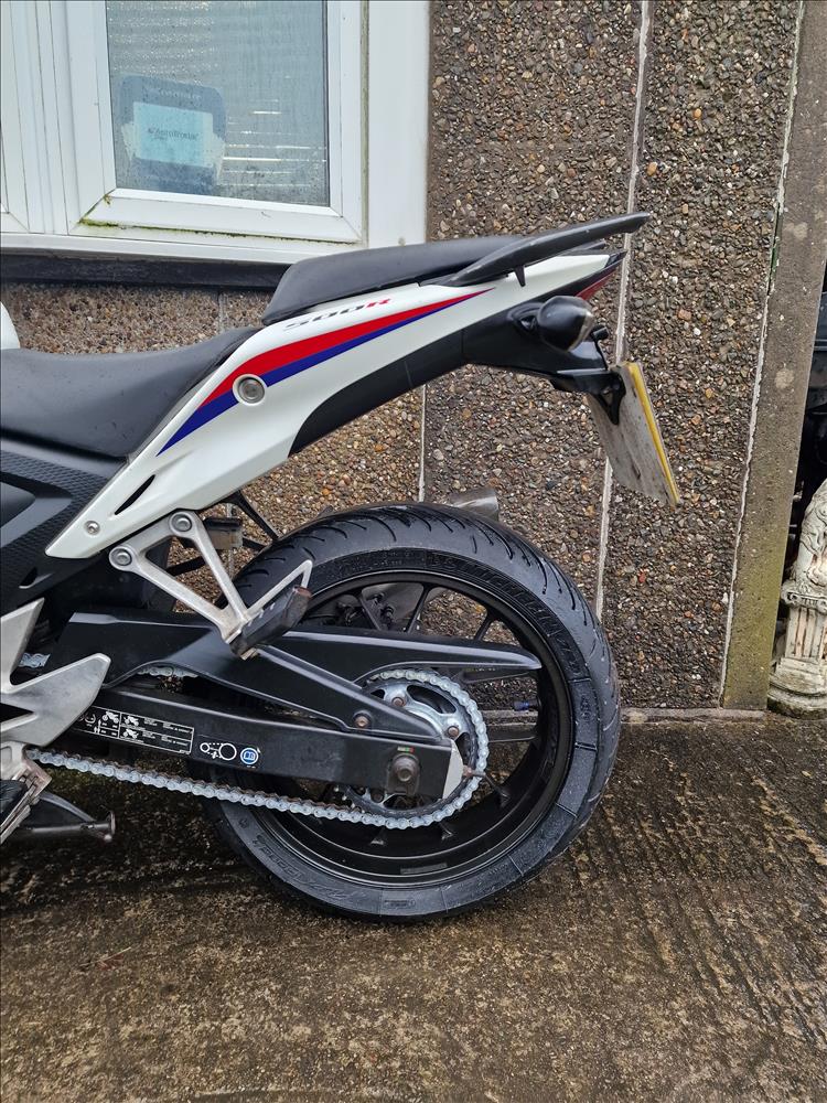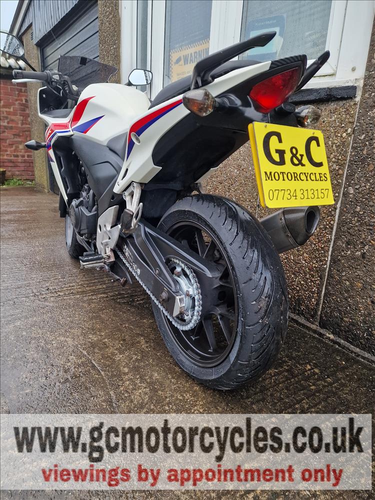GENUINE UK HPI CLEAR HONDA CBR500 RA-D REGISTERED 17/03/2014 , ABS BRAKES , 33,299 MILES SUPPORTED BY GOV.UK CHECK SITE, 4 PREVIOUS OWNERS , SPARE CODED KEY , OWNERS MANUAL , SERVICE BOOK AND OLD RECIEPTS , MOTS etc . A2 LICENCE COMPLIANT , CHEAP TAX BRACKET , EXCELLENT MPG AND LOW RUNNING COSTS . TIDY EXAMPLE IN THE SOUGHT AFTER FACTORY HRC PAINTWORK WITH NO ACCIDENT DAMAGE , COMPLETELY ORIGINAL ORDER THROUGHOUT WITH THE ADDITION OF A SPORTS EXHAUST . STARTS , RUNS AND RIDES PERFECTLY WITH RECENT MICHELIN TYRES . LOVELY FIRST BIG BIKE FOR SOMEBODY , READY TO RIDE AND ENJOY , PRICED SENSIBLY FOR A QUICK SALE , STRICTLY NO OFFERS , FIRST TO SEE WILL BUY , BARGAIN